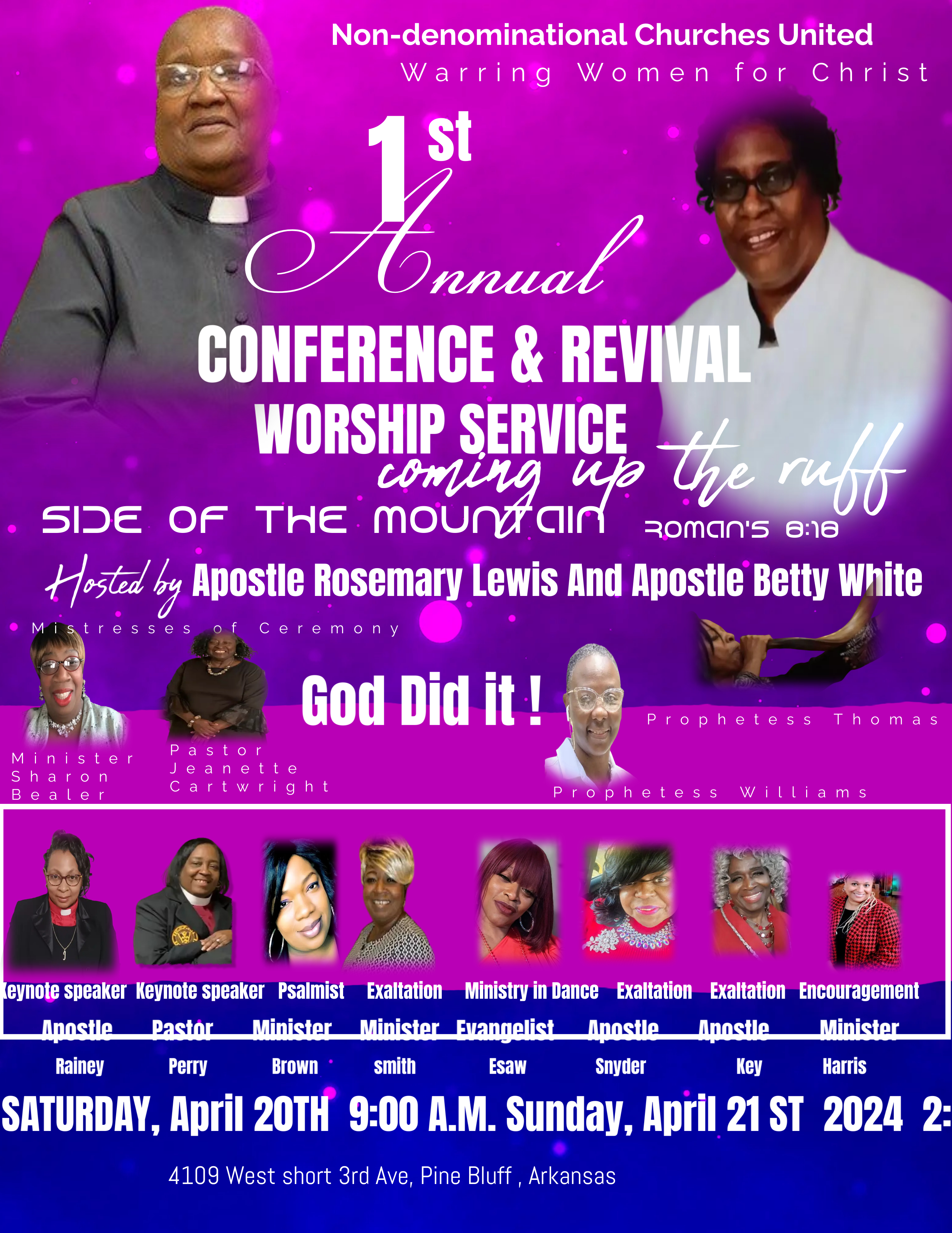 2024 – 1st Annual Women’s Conference & Worship Service: 4109 West Short 3rd Ave, Pine Bluff, AR